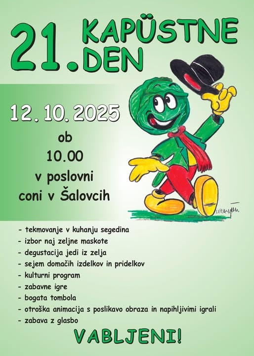 Na že 21. Kapüstnem dnevu se bodo tekmovalne ekipe iz občine Šalovci in okolice pomerile v kuhanju segedina, ob tem pa se bodo predstavile tudi s številnimi drugimi jedmi iz zelja.