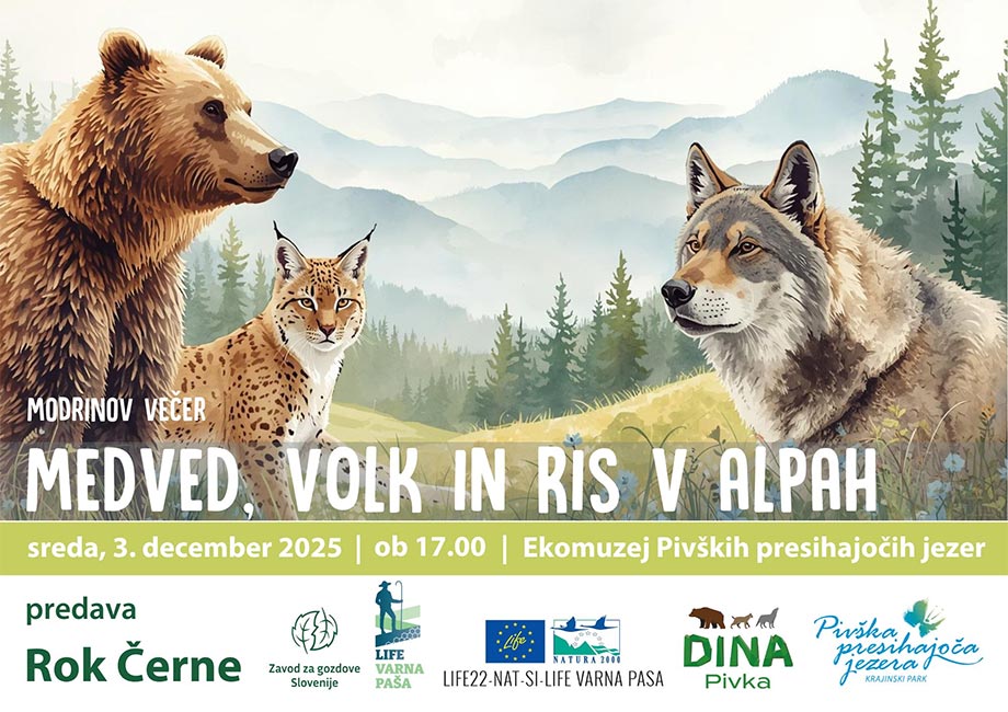 Krajinski park Pivška presihajoča jezera in Dina Pivka vabita na predavanje z naslovom Medved, volk in ris v Alpah.