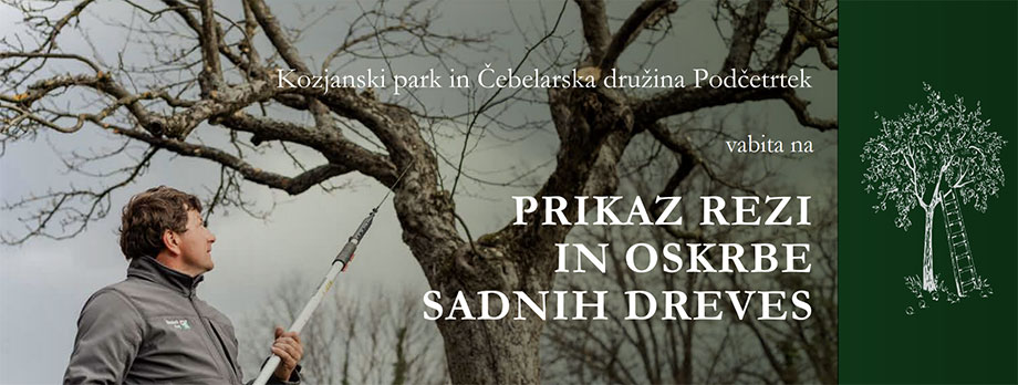 Kozjanski park in Čebelarska družina Podčetrtek vabita na PRIKAZ REZI IN OSKRBE SADNIH DREVES, ki bo 1. marca 2024 ob 15.30 uri v Olimju (zbirno mesto na parkirišču Amon Olimje).