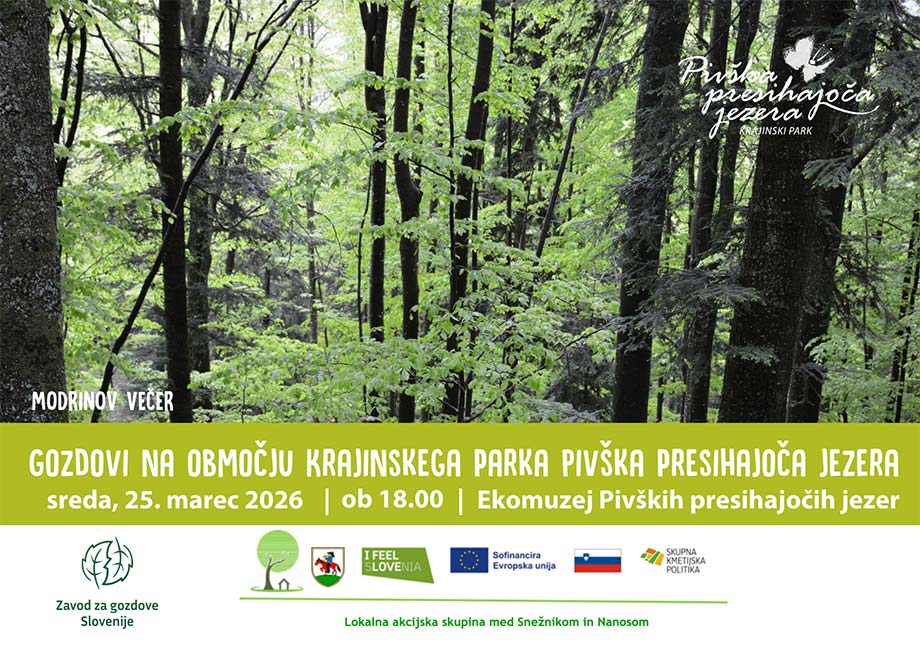 Krajinski park Pivška presihajoča jezera vabi na Modrinov večer z naslovom Gozdovi na območju Krajinskega parka Pivška presihajoča jezera.