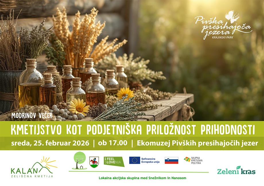 Krajinski park Pivška presihajoča jezera vabi na Modrinov večer z naslovom Kmetijstvo kot podjetniška priložnost prihodnosti.
