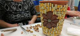 Na začetnem tečaju bomo skupaj z udeleženci v 30-ih urah sprostili njihovo ustvarjalno energijo, spoznali vse o mozaiku, kreirali idejno zasnovo in izdelali mozaični cvetlični lonček in mozaično ogledalo.